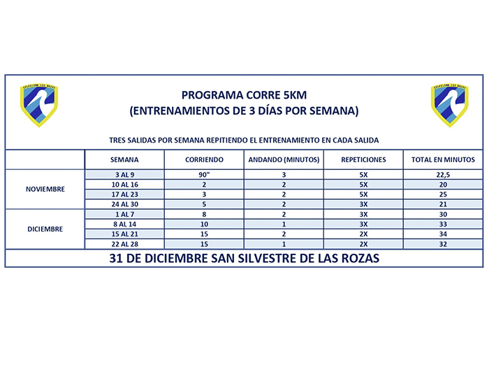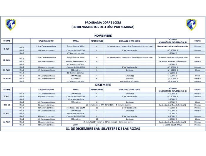 NOTA: Recuerda calentar 10-12 minutos corriendo si vas al 10k o andando si vas al 5k.